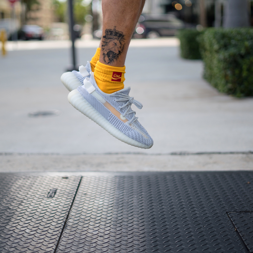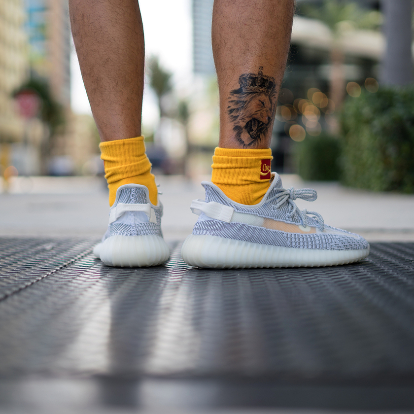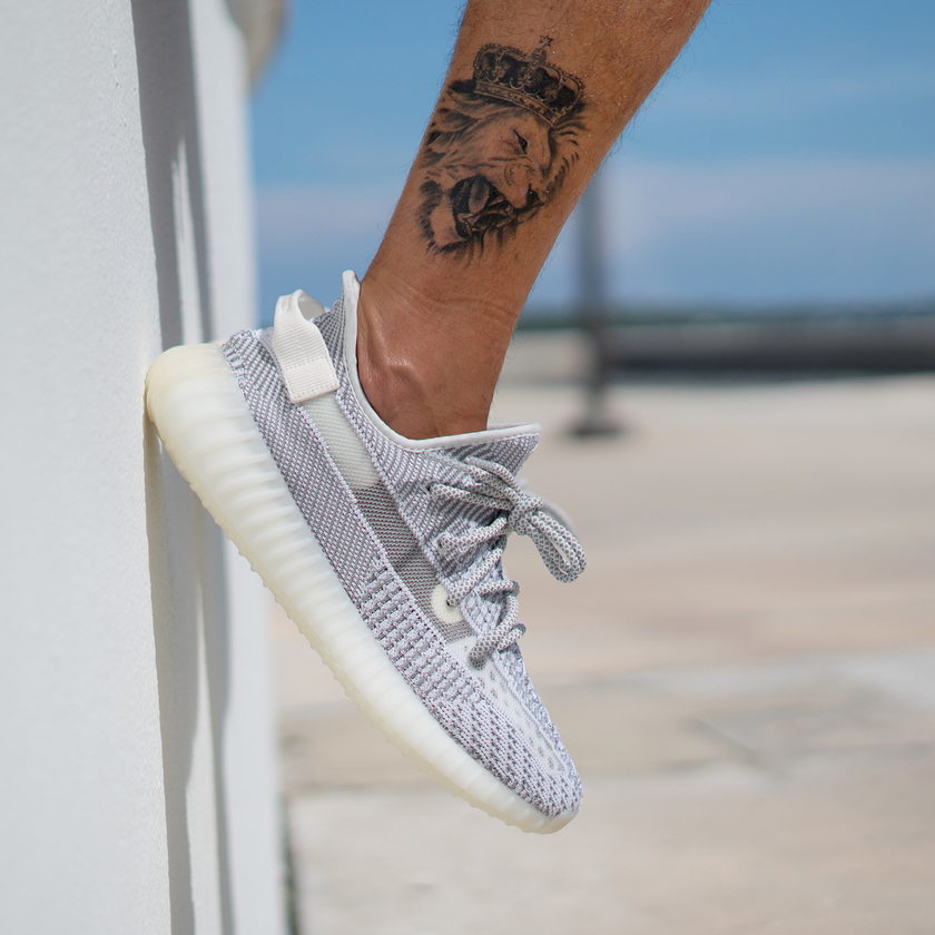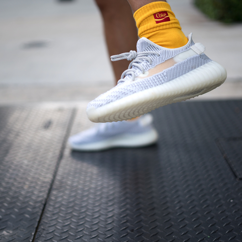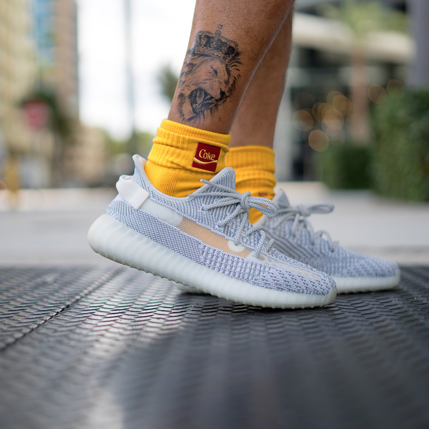 全新加入半透明鞋面设计的 Yeezy Boost 350 V2 “Static”,将成为今年 Yeezy 系列的重点新品,除了独特针织纹路的灰色鞋面外,最大的亮点还在于原本经典的条状涂鸦印花改为半透明的塑料网眼,你的袜子可以通过这条“透明带”展现出来,非常个性。此番网上也是迎来上脚图,各位鞋迷不妨抢先感受一番。