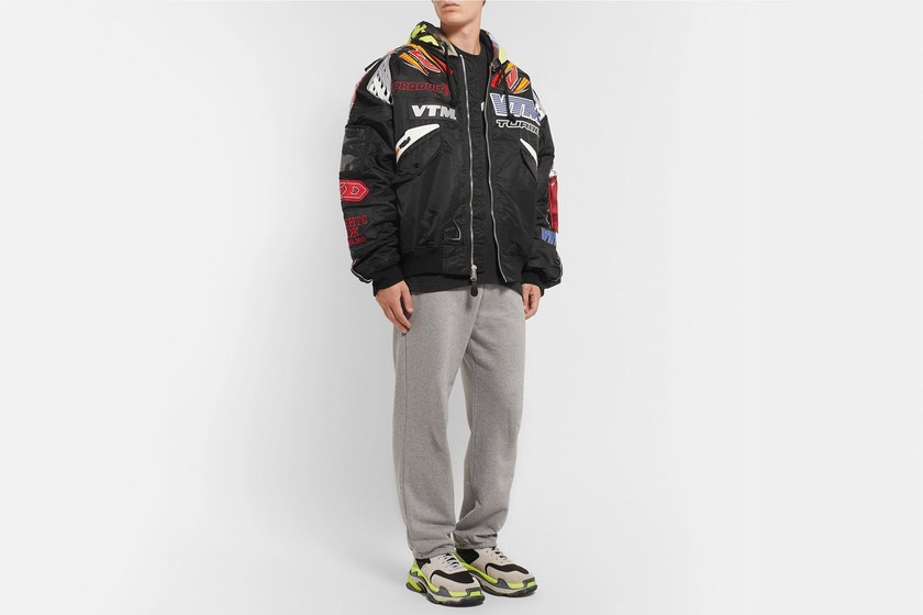 早先 Vetements 和 Alpha Industries 正式推出了最新联名之作,双方从摩托车越野赛和赛车上汲取灵感,将 Alpha Industries 经典 Bomber Jacket 注入和赛车服上赞助商 Logo 相似的 Vetements 变种字样,同时在外套上加入了连帽式的设计,内里部分则是我们熟悉的亮橙色。此款目前已经正式登陆 MR PORTER,售价 $3,315 美元,有兴趣的人千万别错过了。