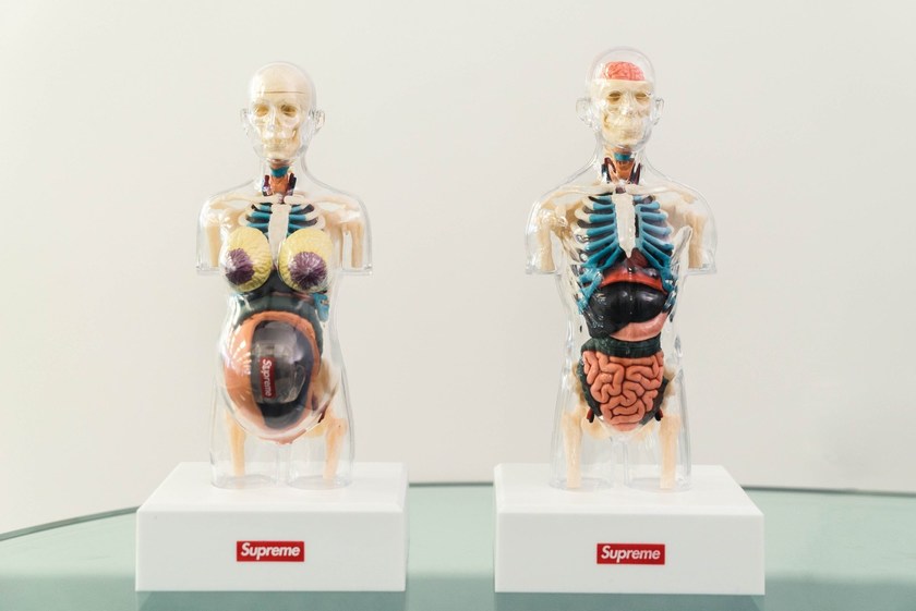 Supreme本季有一样非常特别的单品,就是这对男女人体解剖模型。根据官方说明,这一男一女的人体解剖模型单品是分开贩售,模型达 8” 高,由人手手绘及雕刻当中器官,作为摆设绝对是十分耐看的。想不到实物到着后,却发现原来大有来头。从包装上大家除了看到 Supreme 品牌字样,还有印着“4D MASTER”这个品牌。