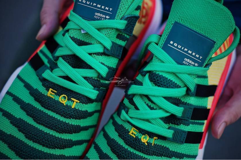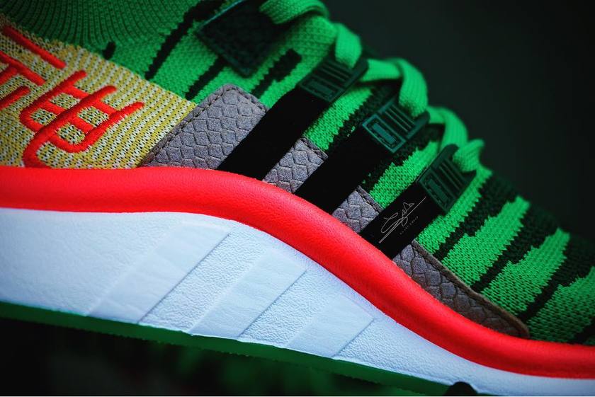 由球鞋摄影师@ s.sam.group 率先揭开龙珠Z x adidas “神龙”配色的神秘面纱,选用adidas EQT Support Mid ADV PK 作为蓝本,设计上以“神龙”的绿色皮肤作为主色调,融入黑色条纹、黄色后跟以及红色刺绣呈现的繁体“神龙”二字,配色运用上非常抢眼。让我们先睹为快把!