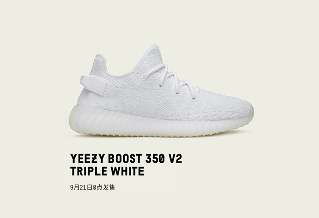 等待许久的 Yeezy Boost 350 V2 “Triple White” 终于要在 9 月 21 日,也就是明天迎来正式发售,想必有不少朋友也都做好准备抢购,不过这次的发售与之前的 Yeezy Boost 略有不同,以往都是在当天上午开始,今回 adidas 则一改规则,宣布会在 9 月 21 日的 0 点开始。