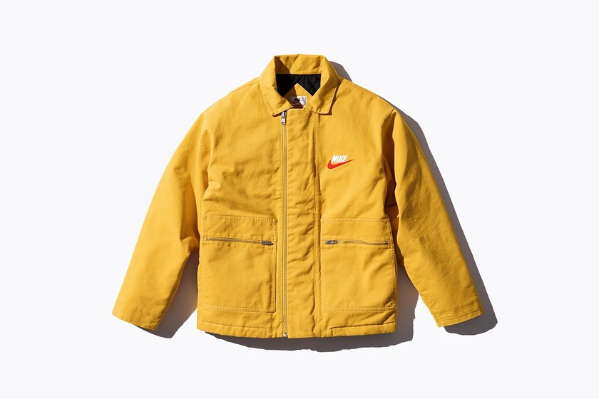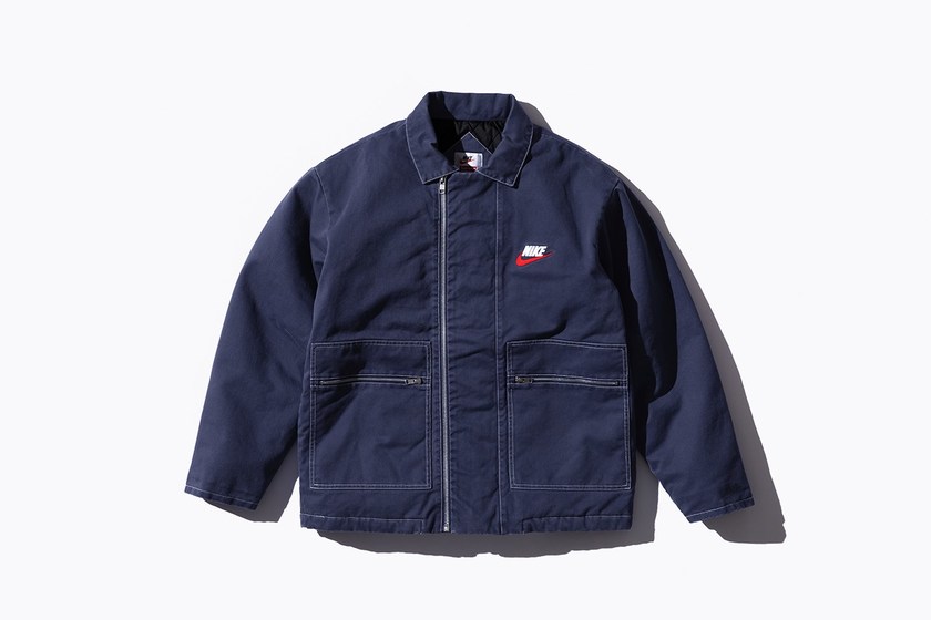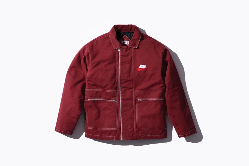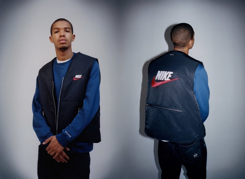 由 Supreme 与 Nike 合作打造的联名服饰系列也终于正式登场。相较于双方此前主打的运动风格而言,新系列围绕美式复古风格展开设计,而色调方面则以迎合秋季的酒红色、姜黄色、深蓝色和黑色为主,搭配上抢眼的红色 Swoosh 呈现别样美式格调。至于单品方面则涵盖了工装外套、双面羊毛背心、连体工装裤、格纹连帽衬衣、圆领卫衣、运动裤、格纹短裤和针织冷帽等丰富单品,而印满 Swoosh 图案的短袖 Polo 衫,以及 Swoosh 造型的 14K 金耳环则是整个系列中最特别的存在。