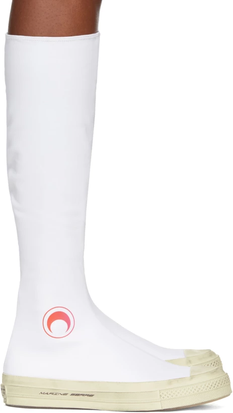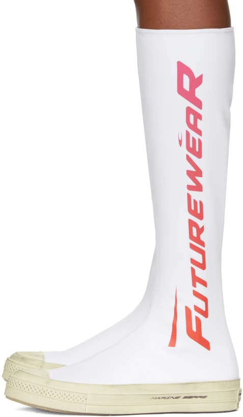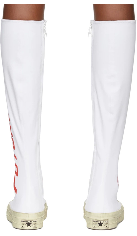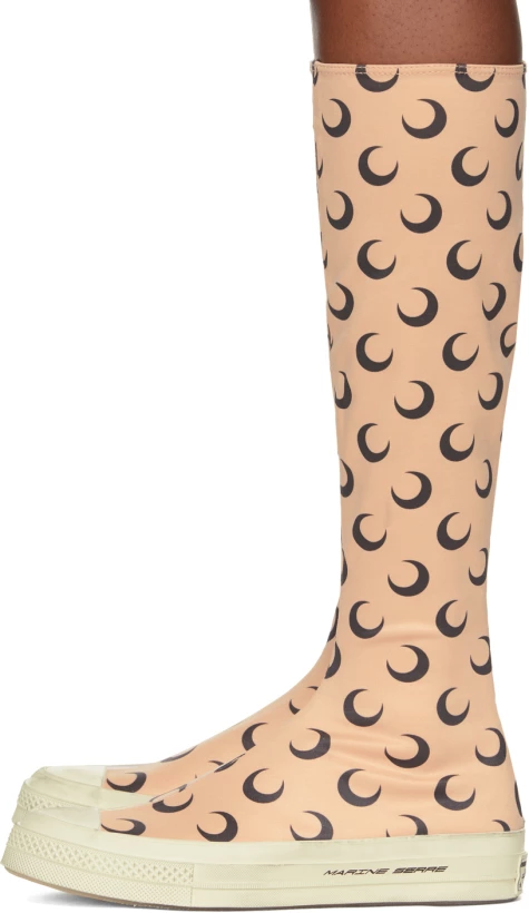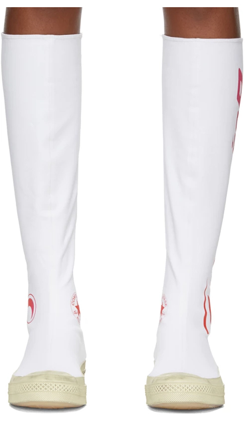 法国设计师 Marine Serre 近日与 CONVERSE 带来联名企划,以 All Star 为底,推出全新鞋款 “Futurewear” CT70。这双鞋履不仅是高帮更是能到达膝盖的长度,这点倒略有 Rick Owens 的影子。鞋身采用轻薄的弹力面料制成,并且内侧设有拉链,分别印有 Marine Serre 标志性的新月图案,一款以粉色为底布满了黑色的新月图案,另一款则是以白色为底,外侧印有红色的新月图案外加一个圆。中底外侧还印有 “FUTUREWEAR” 字样表明联名身份。