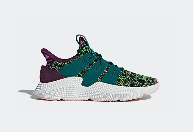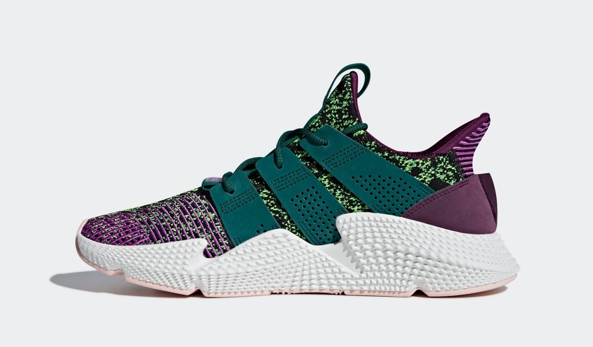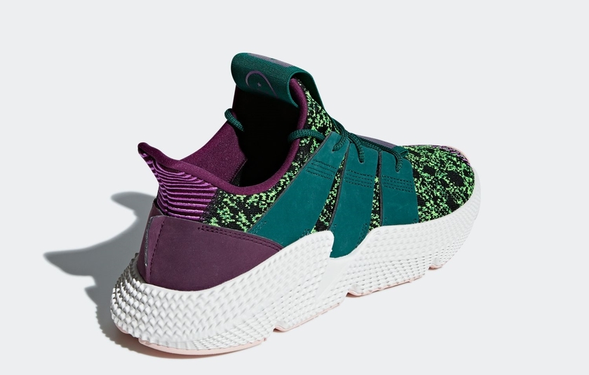 “沙鲁”主题的 adidas Prophere 以绿、紫两色为主调完美还原沙鲁皮肤的颜色,绝对让不少朋友回忆起沙鲁与悟饭最终对决的场景。