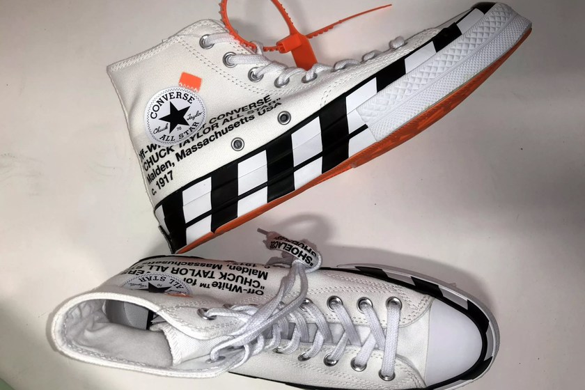近日,网络上曝光了全新 Off-White x Converse 联乘第二弹 Chuck 70 鞋款谍照,此次将不再采用透明塑料材质制作,而是改回 Converse Chuck 70 本来的帆布设计,并采用白色呈现,中底位置则加上 Off-White 标志性的黑白斜间纹塑造亮点,再搭以鲜橙色鞋底。据悉,该系列还有一枚黑色版本,但白色的将于 10 月 8 日正式推出,如此突发来袭,你hold住吗?