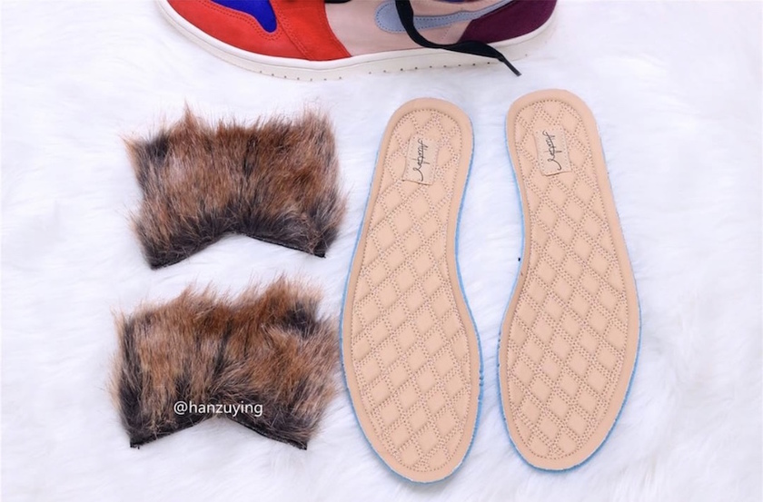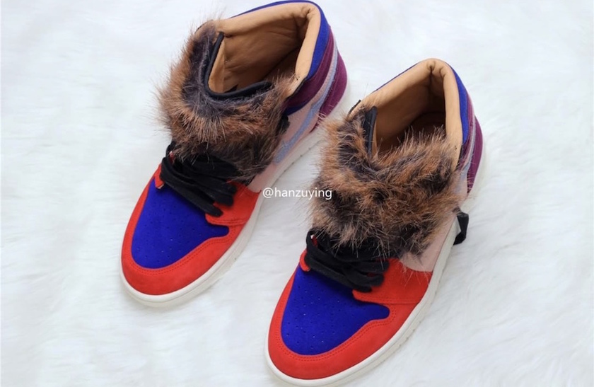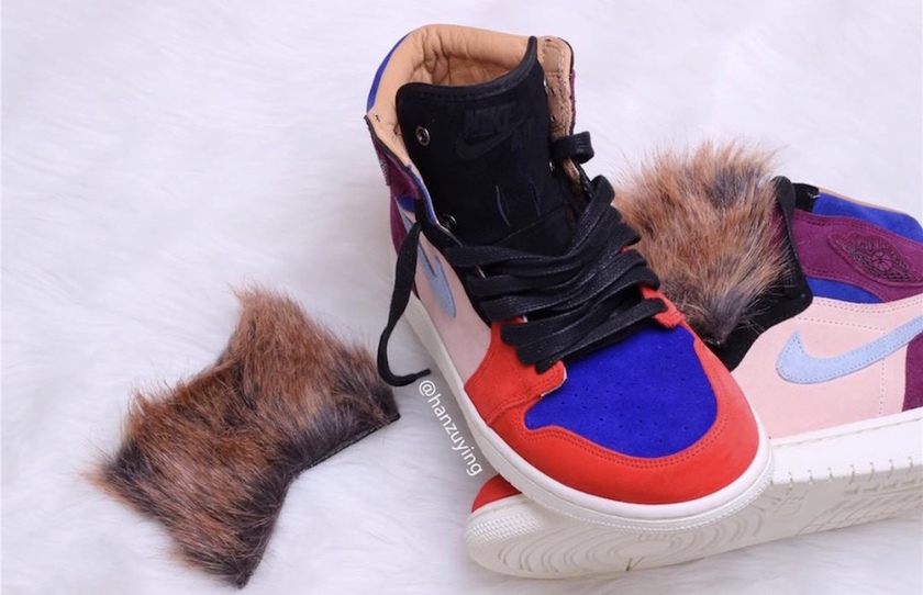 这款 Aleali May x Air Jordan 1 “Viotech” 的设计灵感来自于 2013 年发售的 Nike SB Dunk Low “Viotech”,其鞋面由色彩斑斓的麂皮材质拼接而成。鞋舌部分加入独特的鬃毛设计,而内衬以及印有 Aleali May 签名的鞋垫均以高级皮革打造,高级而又舒适,秋冬上脚回头率爆表!