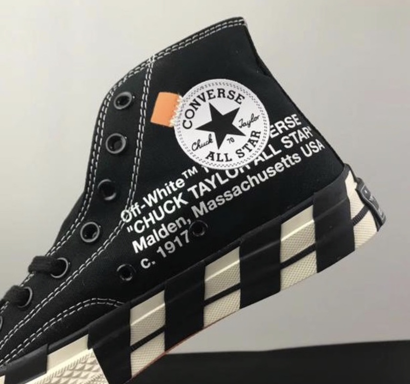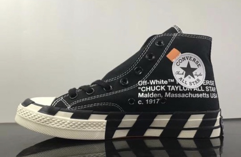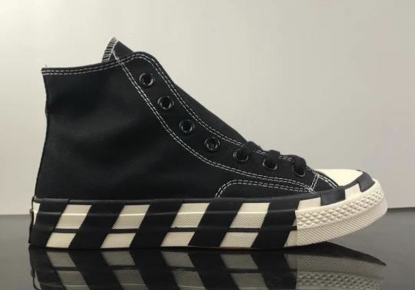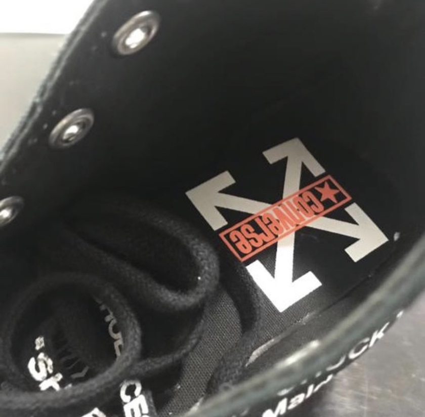 今天,又有一双黑色版本的 OFF-WHITE x CONVERSE Chuck Taylor 2.0 被曝光了,有传言这是被制作出来的 Sample 版本,但是这双鞋是否来自官方还不能确定。
