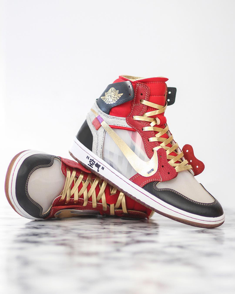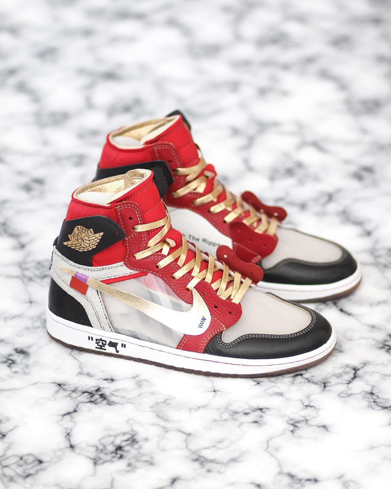 近日,网络上曝光了一款OFF-WHITE x Air Jordan 1 定制配色,与众不同的是,这次的定制设计以“上海”作为主题。选用 Air Jordan 1 XQ 的配色作为蓝本,以黑红双色搭配金色点缀。同时,鞋面侧面的白色部分为半透明蝉翼材质打造,是“The Ten” 系列中的标志性元素。中底处的 “AIR” 说明文字被翻译为中文的 “空气” 字体,呼应中国主题。只可惜这么酷的“上海”主题OW X AJ1 并没有发售信息,你觉得如何呢?
