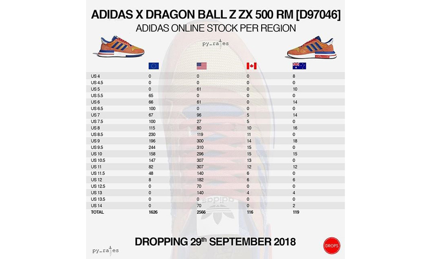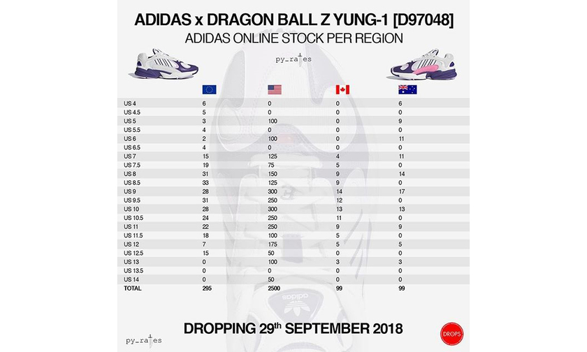 今天,《龙珠 Z》x adidas 的第一波 “对战”:悟空 vs. 弗利沙正式发售了,不知道大家有没有成功入手呢?同时网上曝光出了这两双鞋在四个主要发售地区的货量情况,给大家做一个参考。