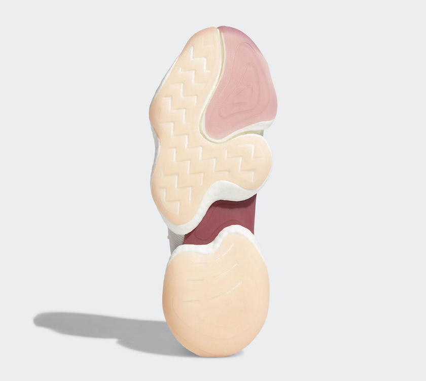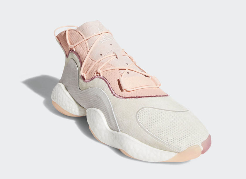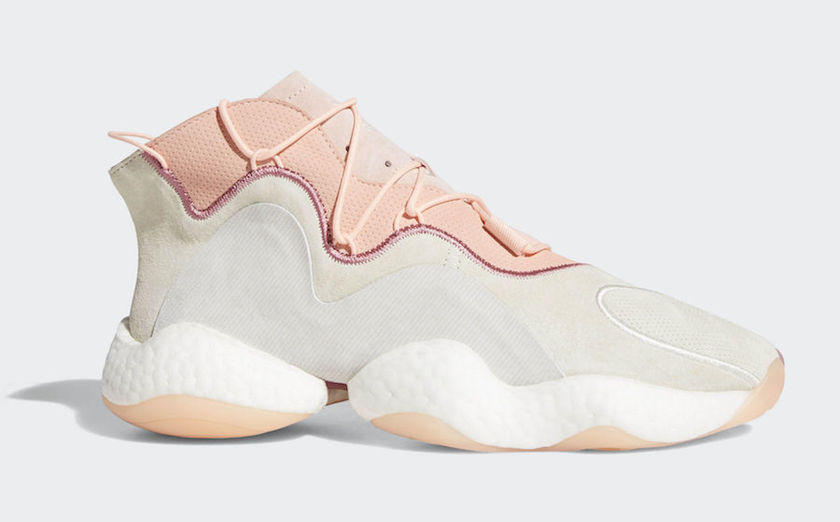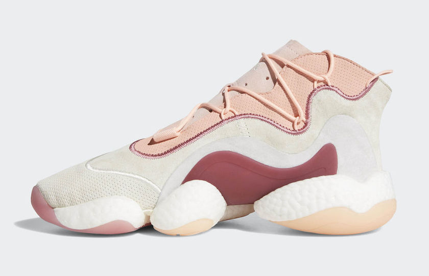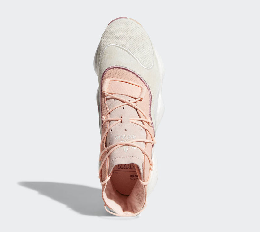 这款全新 “Clear Orange” 配色的 adidas Crazy BYW 鞋面采用米白、浅灰以及浅橘三种色调,鞋面细节以及足弓 TPU 则辅以红褐色点缀。而填满软弹 Boost 材质的夸张造型大底也被浅橘、红褐两种果冻色覆盖,整体清爽亮眼,特别适合小姐姐上脚。