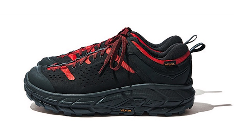 由铃木大器主理的 Engineered Garments 近期与美国新兴跑鞋品牌 HOKA ONE ONE 合作,以其热门的 TOR ULTRA LOW WP 鞋款为蓝本推出了一组联名系列。HOKA ONE ONE 倡导缓震超大化,其最具代表性的就是那非常宽厚的中底。这次双方带来包括棕褐色、黑色和黑红在内的三款配色,鞋款具备 Vibram 外底,内衬采用 Event 防水透气膜,防水的同时兼顾透气性。尽管双方目前没有公布详细的发售信息,但想必这一系列将会在秋冬登场,喜欢的朋友不妨多多留意。