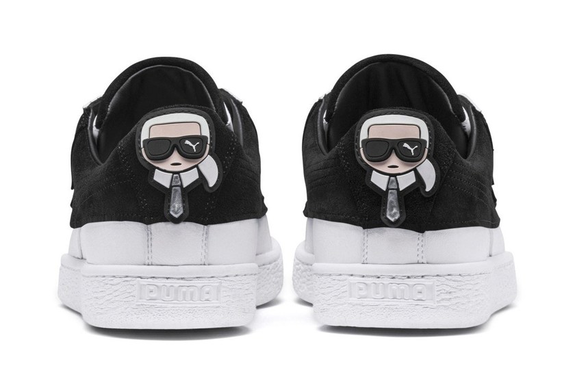 为了庆祝经典鞋款 Suede 诞生 50 周年,PUMA 已陆续多个品牌展开合作,此外最近更将邀来时装界的重量级人物 Karl Lagerfeld 助阵。灵感来自这位 Chanel 和 Fendi 创意总监标志性的西装和墨镜造型,两双 PUMA Suede 均采用简约的黑、白配色组合,其中一双通过黑色麂皮与白色皮革的叠合制造处层次感,而另一双则在鞋带处加入了墨镜造型的搭带,并均在后跟点缀上“老佛爷”的肖像。不过,目前 PUMA 尚未透露这个联名系列的具体发售信息,让我们一同拭目以待!