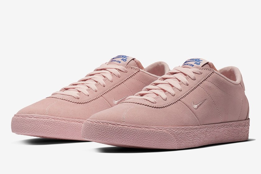 Nike Sb 与 NBA 联名的缎面 Dunk Low 鞋款在 9 月下旬率先推出后,此番带来完整鞋款一览。此次双方的合作包括Dunk Low「Deep Royal Blue」、Blazer Low「全白」以及 Bruin Low「Bubblegum」三种鞋型,并且各自运用了缎面、皮革和绒面等质料打造而成。
