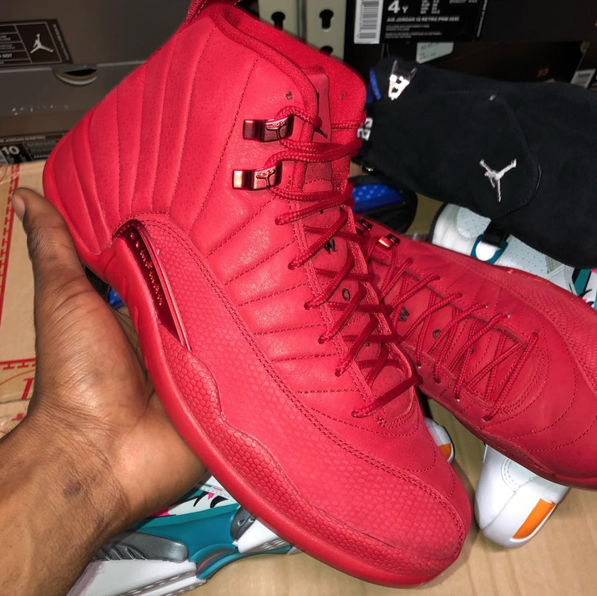 这款成人码 Air Jordan 12 “Bulls” 与早先释出的 GS 版本采用一致的设计,鞋身通体被大红色调包裹,两侧鞋带扣以及侧面 TPU 同样以电镀红材质点缀,直击公牛队主题。
