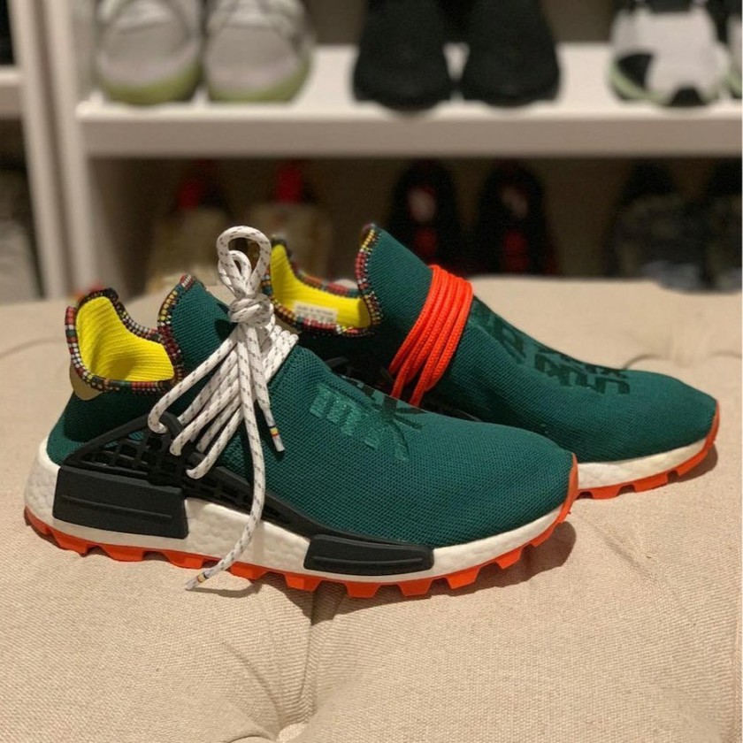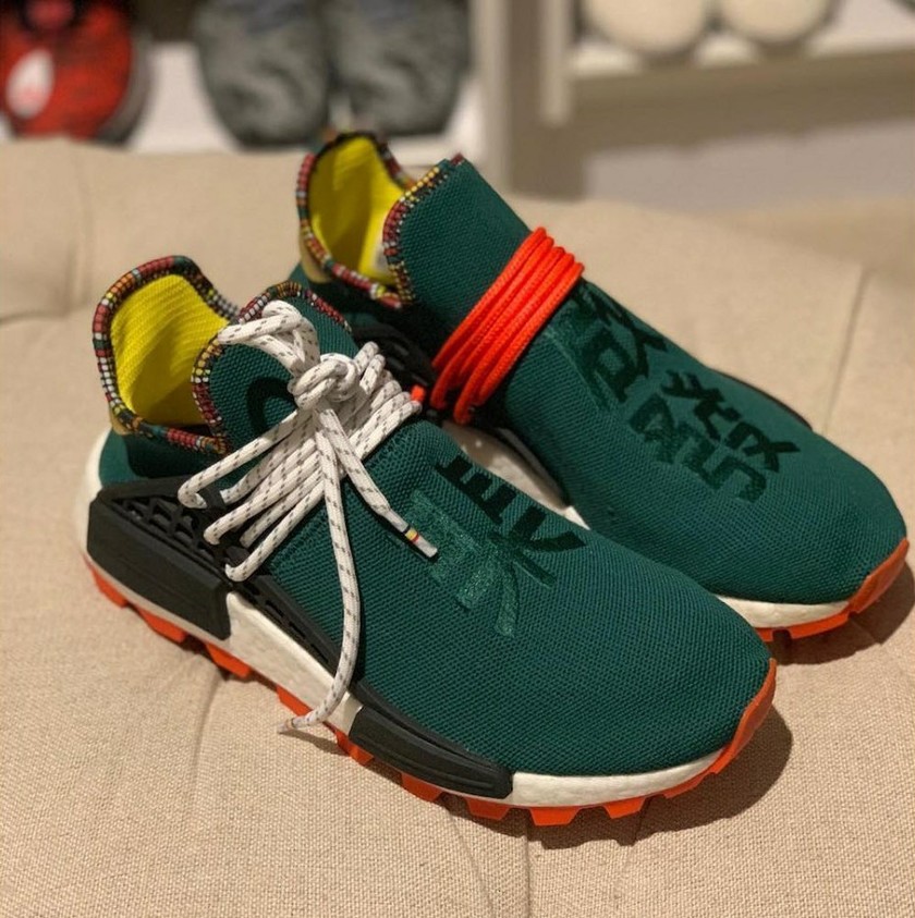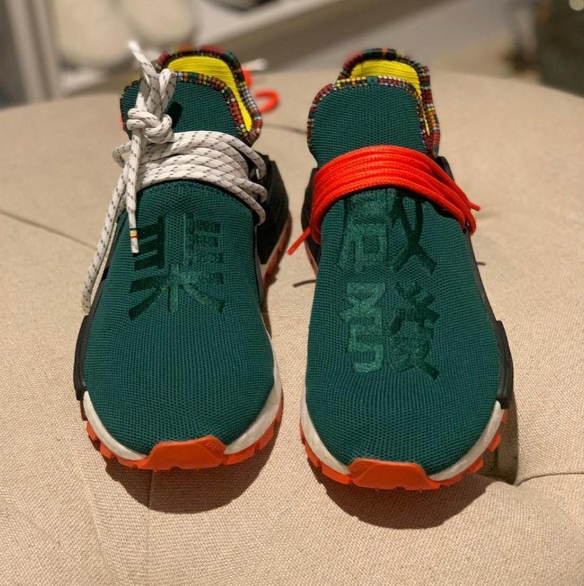 由 Pharrell 与 adidas Originals 全新打造的 Hu NMD“Inspiration”系列又有一双鞋款现身网络。而据球鞋摄影师 @yankeekicks 消息,该配色仅为中国限定。从实物图中可看到,这双 Hu NMD 采用了深绿色鞋身,与黄色内里、黑色支架、多彩鞋领和橙色外底碰撞出 Pharrell 独有的风格,而鞋面上的“啟發”和“棐”字样则是新系列的主题所在。目前 Pharrell 与 adidas Originals 均尚未透露全新 Hu NMD 系列的正式发布时间,感兴趣的朋友请继续关注!