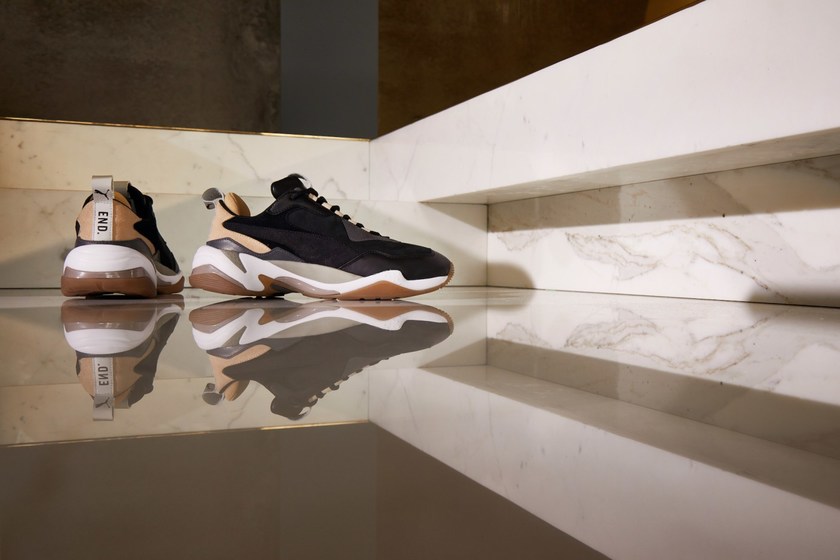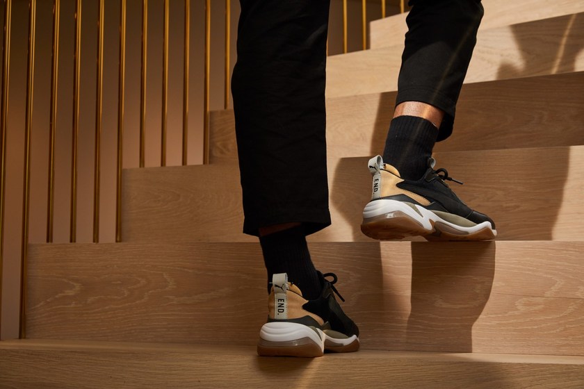 英国时尚名所 END. 带来了与 PUMA 的全新合作企划。以 PUMA 近来力推的 Thunder 作为原型,这双名为「Shadow Rise」的联名配色以黑色作主调,鞋身由牛巴革与皮革结合构成,在鞋带和后跟处融入浅棕色营造对比,并配上点缀着印有双方联名 Logo 的皮革拉环,而所搭载的 IMEVA 大底亦采用拼色呼应。目前,该鞋款已在 END. Launches 开放登记,售价则为 $135 美元。
