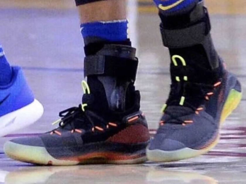 每年欧文的签名鞋都会在年底前后正式发售,因此现在我们还无法购买到欧文5或者拿到一定资料。但是近日我们收到某个波士顿“热心市民”的消息,欧文在训练中上脚了一款球鞋印有他logo和签名的球鞋,这款球鞋大概率就是他的欧文5了,不过这个消息还没有正式确定,让我们静候佳音。