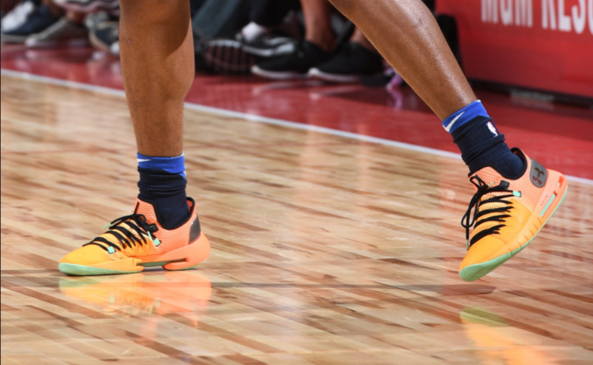 新赛季马上开始,但是如今NBA的代表性人物史蒂芬·库里的新鞋却还一点消息都没有。不过最近我们又通过金州的热心市民得到了一点关于库里6的消息。库里在训练中上脚了一双神秘鞋款,基本确定就是全新的Curry 6了。