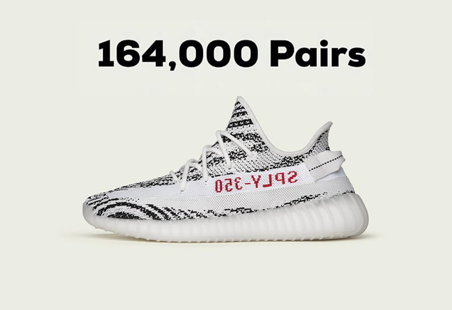 下个月我们终于将迎来超高人气的白斑马 Yeezy 350 Boost V2 “Zebra” 第三次发售!这次补货的货量也成为大家比较想知道的焦点。而近日,网上突然流出一张图片,疑似提前泄露出白斑马再次发售的货量,似乎这次将在全球范围内发售 16 万 4 千双。