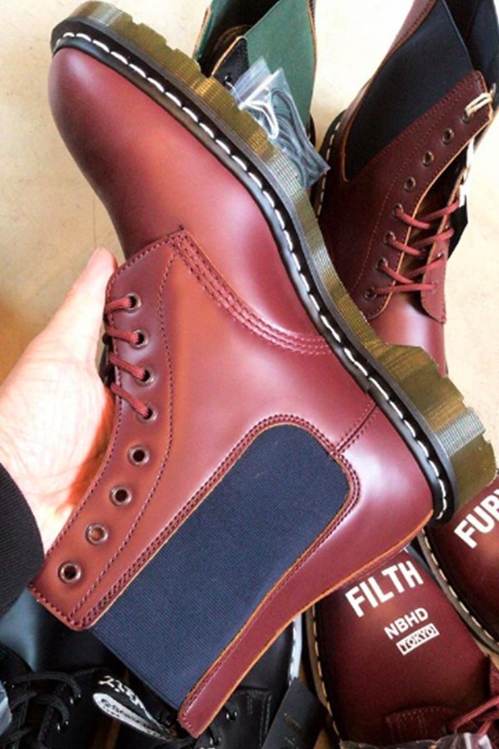 英国经典靴牌 Dr. Martens 此番与日本街头品牌 NEIGHBORHOOD 合作推出别注版皮鞋,并由其主理人泷泽伸介于其个人 Instagram 帐户中揭开相关鞋款的各个细节。这次联名采用了 Dr. Martens 最高端的「Made in England」工厂所制作鞋履为基调,鞋款以品牌标志性的 1460 及 1461 机种为基础,两个版本均分别在不同地方印上了「NBHD」字样,而高筒版本的鞋则更加入了方便着用的橡筋带,质感颇佳。