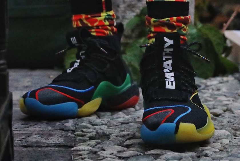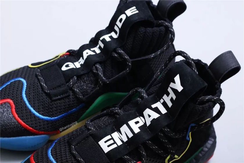 在中国活动期间,菲董 Pharrell Williams 就上脚了一款全新的 adidas Crazy BYW。近日,这款全新 adidas Crazy BYW X Gratitude Empathy 释出近景实照。黑色的鞋身上点缀有红、黄、蓝、绿四色,整体效果十分绚丽。两侧鞋舌分别印有 “EMPATHY(同感)” 和 “GRATITUDE(感激)” 白色字样,延续了菲董一贯的设计风格。据悉,这款 adidas Crazy BYW X Gratitude Empathy 预计将于年底 12 月展开发售,小编将继续关注其后续动态。