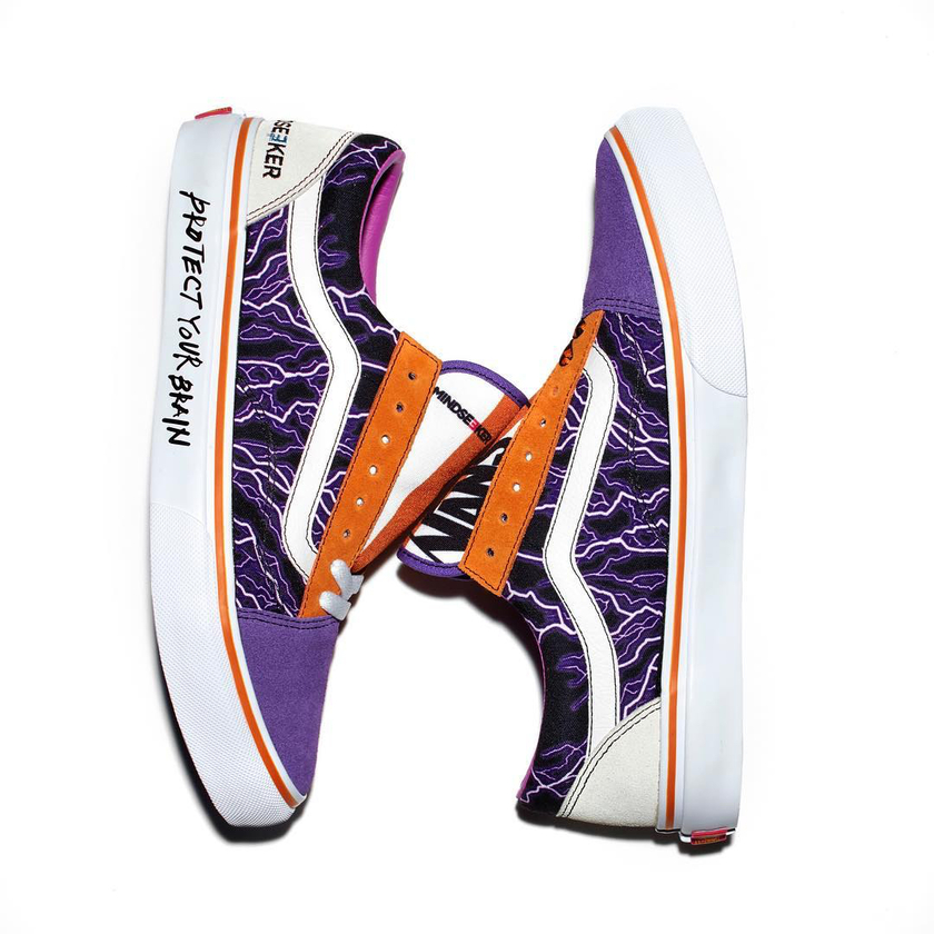 来自洛杉矶的新晋街头品牌 mindseeker 此番再度与 Vans 发布联名设计,以 Vans Old Skool 为蓝本展开,主题为 “Prostect Your Brain(保护你的大脑)”。两款鞋分别以 “火” 和 “闪电” 图案为主视觉呈现,并分别搭载黄黑与紫白,鞋底处以手写体的 “Protect Your Brain” 字样展现,后跟处则搭载mindseeker 标识。据悉该系列将于 11 月 3-4 日举行的 ComplexCon 上首发,感兴趣的朋友不妨多多关注。