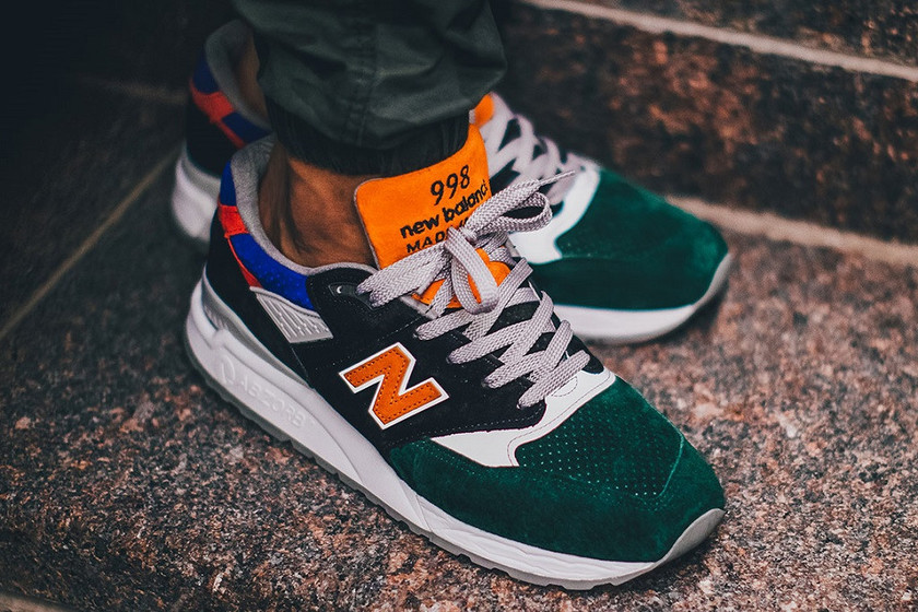 DTLR VILLA 与 New Balance 的再度携手带来费城限定“Four 4 Four”。以 New Balance 998作为蓝本,鞋面融入色彩丰富拼接设计,包括橙色、绿色、黑色、红色、深蓝色以及白色。双方品牌素来注重材质,这次也自然不会怠慢,鞋面大面积地使用了高级绒面,质感满分。