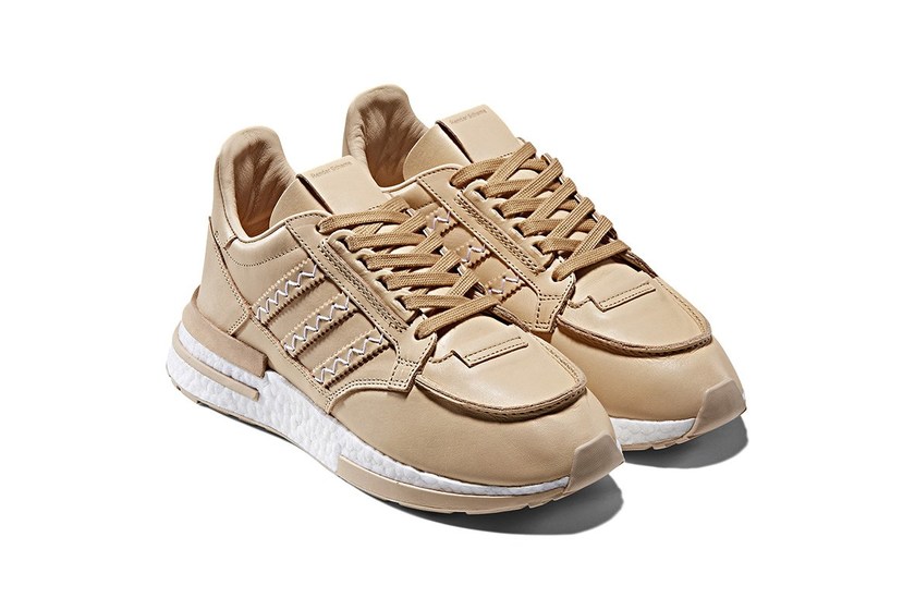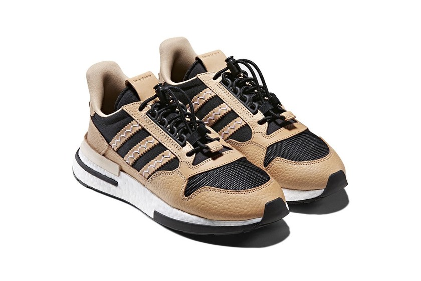 其中鞋款分为 HS ZX 500 RM FL 和 HS ZX 500 RM MT 两个款式,前者的「FL」意为「Full Leather」,整个鞋身全采用原色植鞣革制作,而后两双鞋款则将皮革与白、黑二色网眼进行结合,更换上栓扣式鞋带系统。三双鞋款均通过白色缝线勾勒出 Three Stripes 标志,配以带有 Hender Scheme 字样的鞋舌皮标,以及后跟冲孔三叶草 Logo。