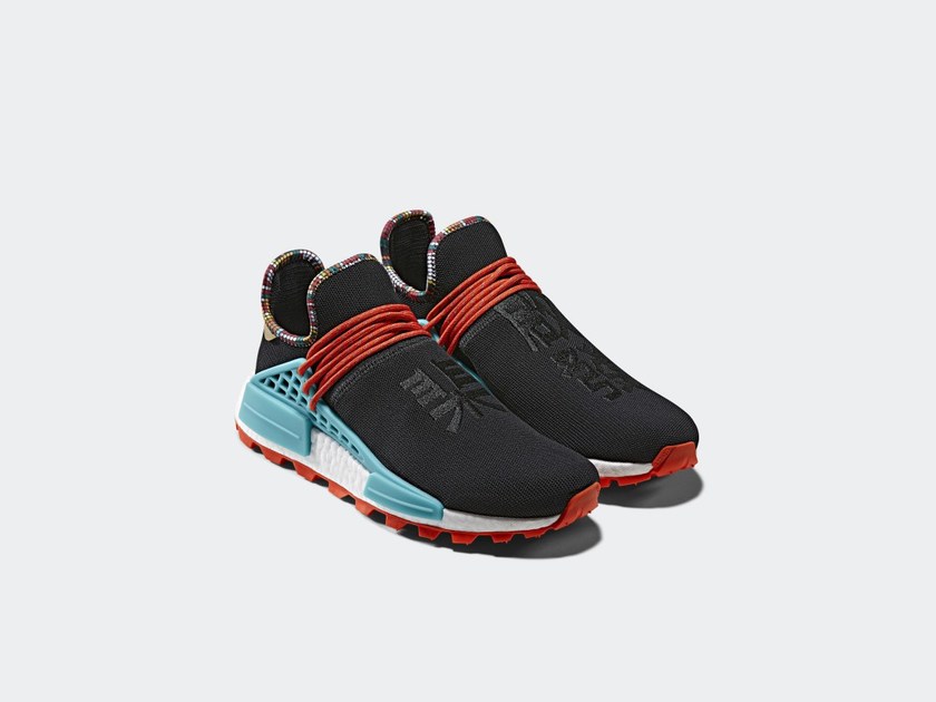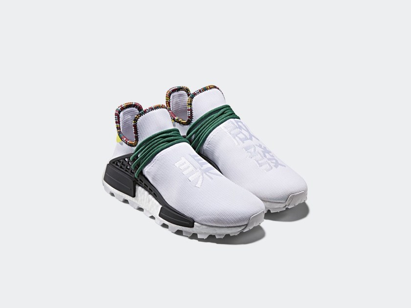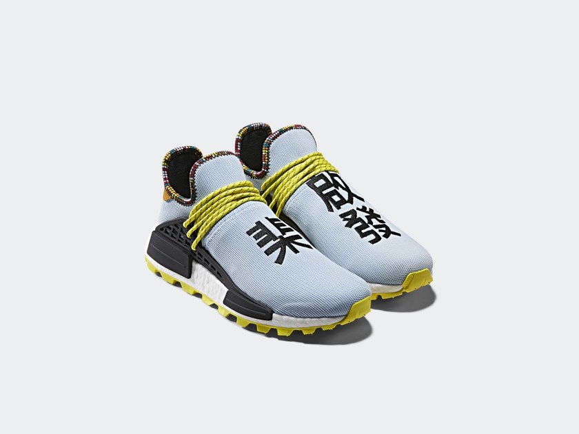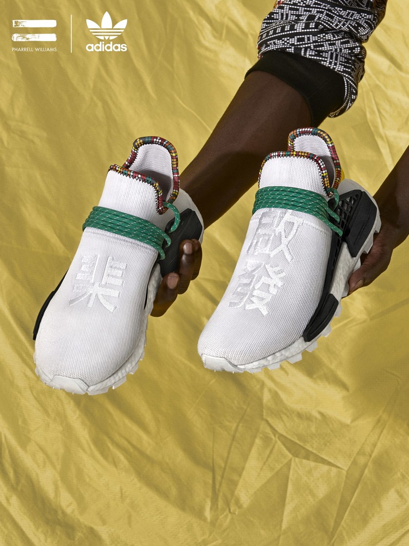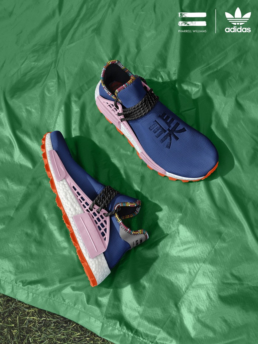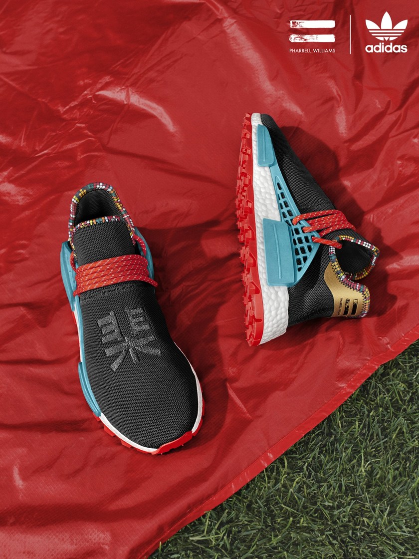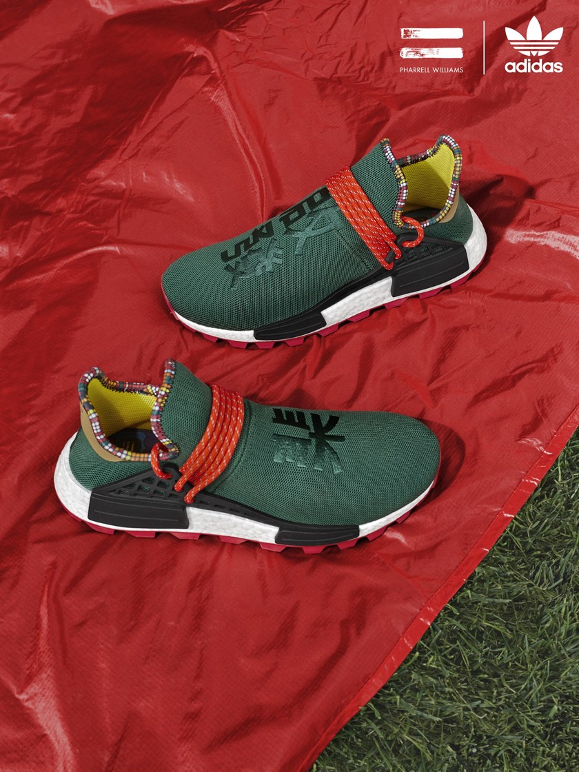 新系列包括 5 双 Hu NMD,分别以黑、白、蓝紫、浅蓝和墨绿作为主调,并在鞋带、两侧支架和后跟融入撞色细节,鞋领上多彩元素彰显 Pharrell 对于民族风格的热爱,而鞋面上的「啟發」和「棐」字样更成为焦点所在。