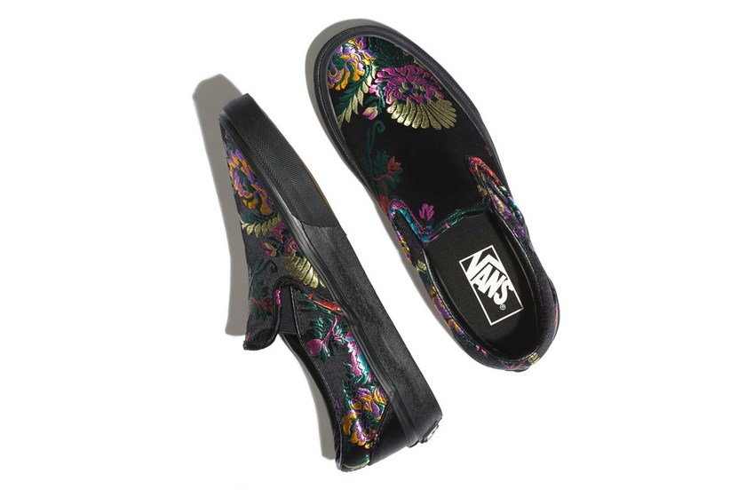 Vans 今回为我们揭晓了全新别注系列「Festival Satin」,全系列以经典鞋型 Slip-On 为题,带来黑红两种色调,并运用缎面质料打造鞋面,同时注入大量花卉刺绣于鞋身上,鞋垫以及中底配置则与基本款无异,大底同样为经典棋盘格胶底。