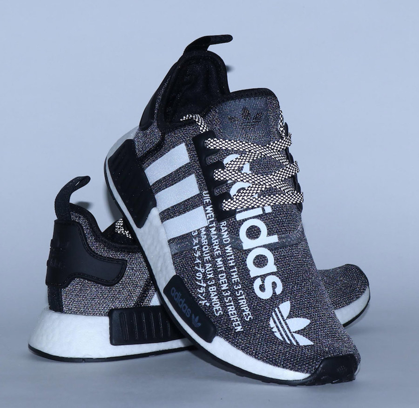 日本球鞋店铺 atmos 此次再度与 adidas 合作,推出联名版 NMD R1。鞋身以经典的黑白配色呈现,在鞋面上印有巨大的 “adidas” 和三叶草 Logo,常见于 NMD 系列后跟提带上的多国文字也被移植在鞋面上。除此之外,鞋面还暗藏反光效果,在夜晚有更亮眼的表现。
