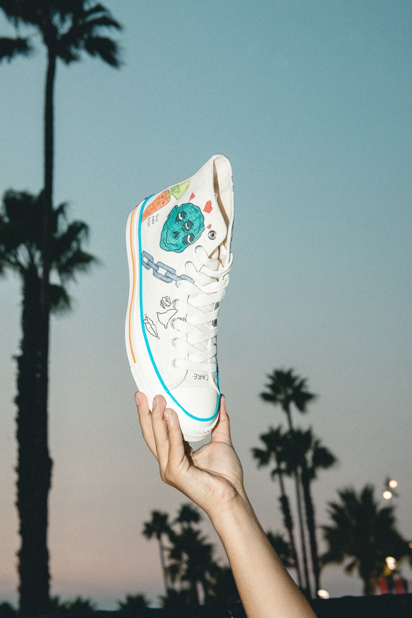 Tyler, the Creator x Converse 全新联名曝光!这次一改往常小花设计,反而是在白色 Chuck 70 上融入涂鸦图案。据悉,该鞋款是来自 Tyler 所发起的「Artist Series」企划,白色帆布鞋身上的印花图案来自 Wyatt Navarro 与 Oyvind Laudvahl 两位艺术家之手,再融入蓝、黄二色护条呼应。这双联名 Chuck 70 将于 11 月 26 日登陆全球各大 Foot Locker 门店发售,定价为 $100 美元。