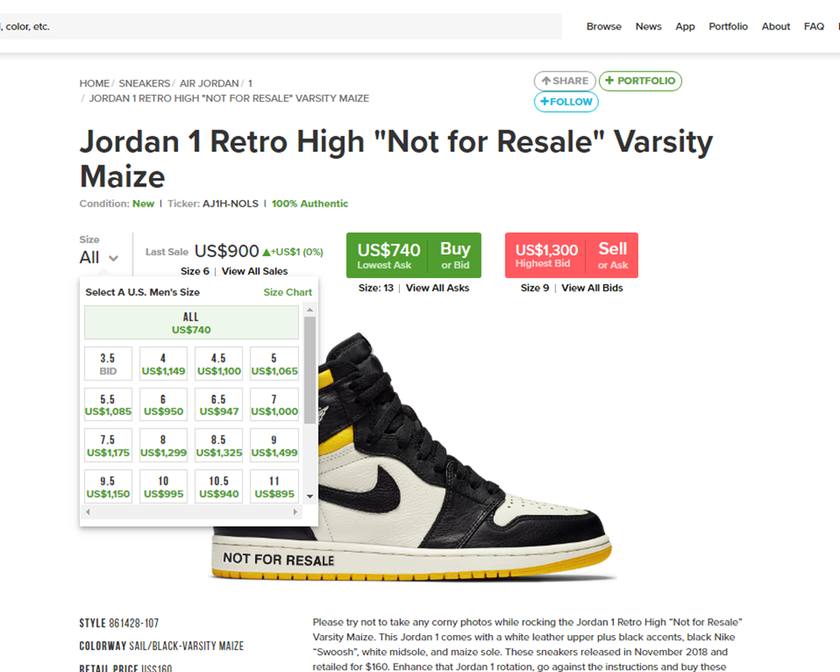 而另一款洛杉矶限定的黄色版本更为夸张,目前在球鞋交易平台 StockX 上男款黄金码的价格就已在 $1300 美元左右,相当于接近 ¥9200 元。该版本发售量还远比红色版本少,以它的稀缺性和人气,想必发售后炒卖价也同样会暴涨。