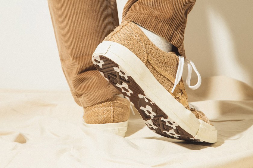 由 Tyler, the Creator 与 Converse 全新推出的 GOLF le FLEUR* 系列于本周正式开卖,此番带来“Burlap”系列完整上脚图辑。该系列一举收录 One Star 与 Chuck Taylor 两大鞋款,以粗麻布颜色和纹理塑造,注入黑色「Golf le Fleur*」和「太阳花」细节作点缀。