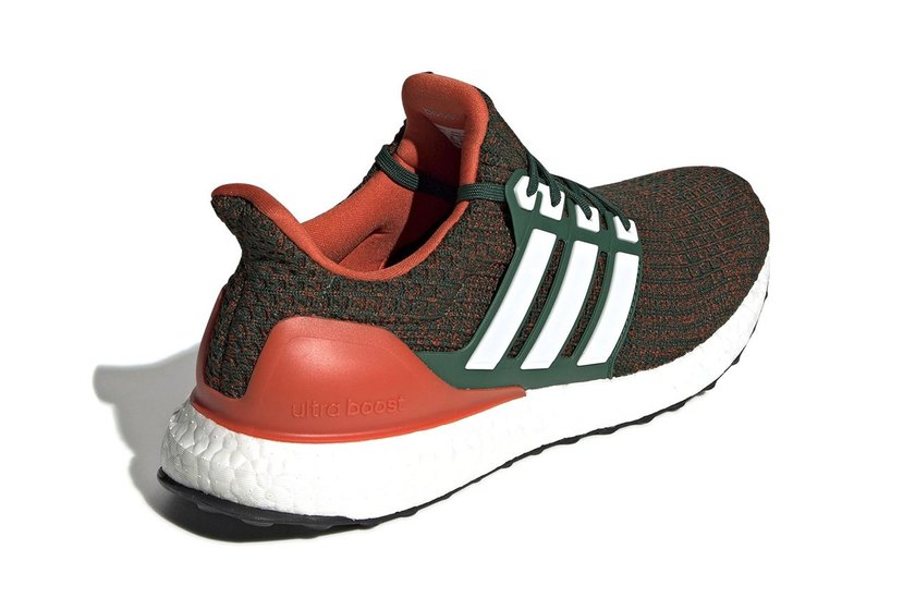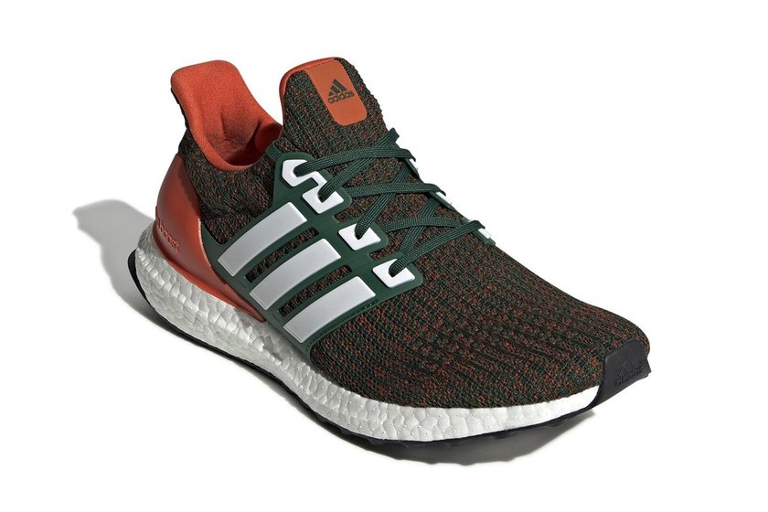 除了宣布将于 12 月 1 日复刻 UltraBOOST 元年配色之外,adidas 此番还为 UltraBOOST 4.0 释出全新“Miami Hurricanes”配色。设计上采用绿色与橙色交织的 Primeknit 材质制作鞋面,辅以白色三间细节装饰墨绿色 TPU 支架,而后跟与衬里则以橙色呼应主题,最后搭载白色 BOOST 中底而成。据悉该鞋款将于 12 月 2 日正式登场,定价为 $180 美元。