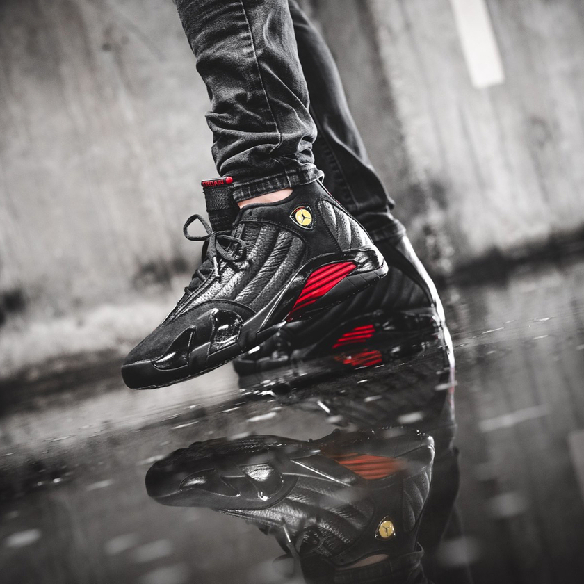 再让我们聊聊“最后一投”的故事,1998年的NBA总决赛第六场,迈克尔·乔丹穿着着这双球鞋在最后时刻晃倒自己的防守人,投进准绝杀,从而带领他的公牛队完成了第二个三连冠,他也随之退役。“最后一投”的场面就此成为篮球史上的一个经典,这双配色的AJ14也就此得名。这双鞋在今年也是有着非常大的货量,低于原价的价格入手这双球鞋还有点小赚。