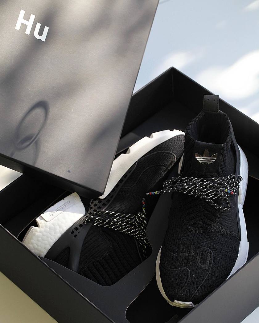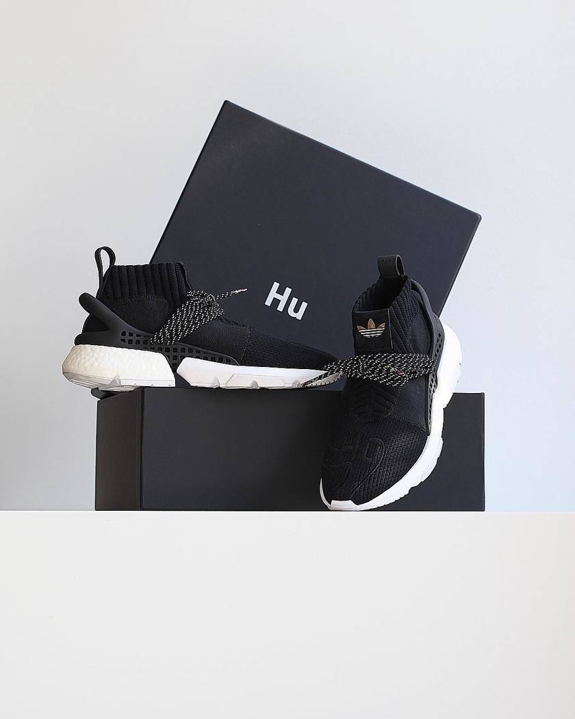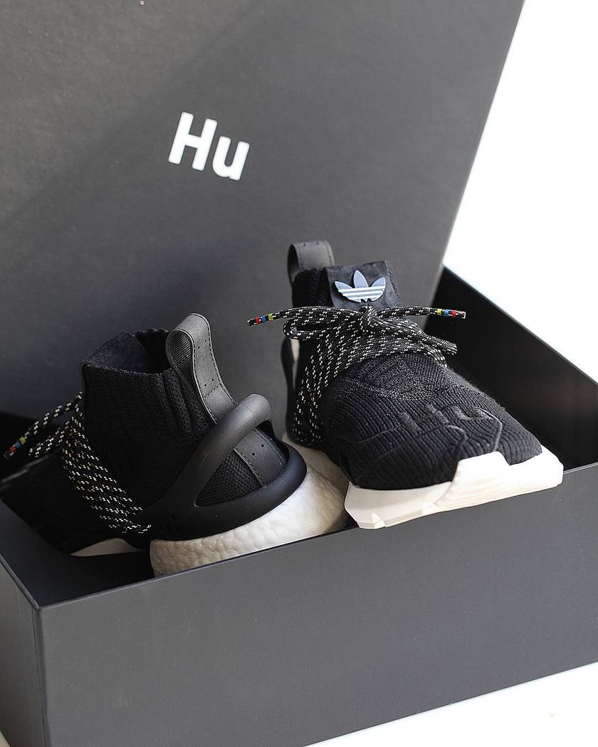 整双鞋以黑白色为主调,中帮鞋型融合了多双鞋的设计元素:Primeknit编织鞋面中能看到 BYW X 的影子,而鞋身两侧的支撑与鞋带系统又与 adidas NMD Hu Trail 非常相似。最后搭载全新鞋型 adidas POD 的鞋底,前掌 EVA 后掌 Boost 缓震。