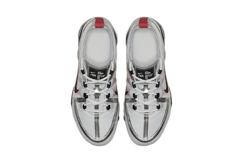 在率先看过黑色、浅紫、蓝色及金红版本之后,2019 年新版的 Nike Air VaporMax 又有一双“Metallic Silver”配色现身网络。从图片中可看到,以大热的半透明弹力编织材质取代 Flyknit 结构的鞋身将以白色作为主调,中足处内植有红色固定支架,而鞋面的多处银色细节以及银灰色的 VaporMax 气垫大底则为整体增添了些许未来感。目前 Nike 尚未公布 Air VaporMax 2019 的具体发布信息,感兴趣的朋友还需耐心等待!