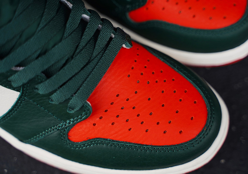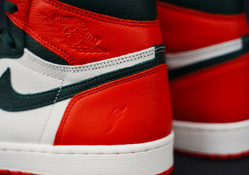 这两款全新的 SoleFly x Air Jordan 1 规格极高,其中一款与“扣碎篮板”颇为相似,以绿、橙、白装扮呈现,视觉表现让人惊艳。除此之外,细节处理也极有诚意,鞋舌内的定制标签是以迈阿密的区号“305”进行点缀,鞋跟上添加了印花标志,加上超大号 Jumpman 吊牌,亮点满满。
