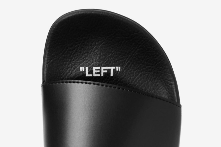 Off-White 最新推出了一双以皮革打造的拖鞋单品,采用了 90s 大热拖鞋设计作基调,采用优质皮革制作之外,更特别加入了品牌标志性工业风「Industrial Belt」织带,配合索釦能大大增加机能性及舒适程度,鞋身一反品牌向来的风格采低调全黑色素面设计,辨识度极高的标注式字样 “LEFT” 及 “RIGHT” 则放到鞋垫之上,却故意将左右调转,充满玩味。