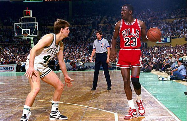 而著名的波士顿花园打脸事件,也是穿着“芝加哥”完成的,故事大家都知道:乔丹当年季后赛遭遇波士顿,第一场拿下49分,拉里伯德公开表示乔丹只是走狗屎运,49分绝不会再出现,结果第二场乔丹就拿下63分啪啪打脸,在那个年代,能让大鸟吃瘪的人不多,乔丹算一个,伯德也不得不说出了那句著名的:“今天是上帝本人在扮演乔丹打球”。个人最喜欢的AJ1也是“芝加哥”