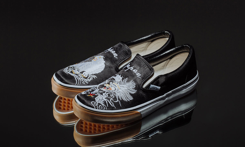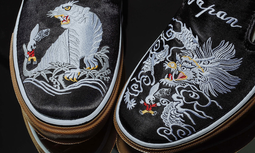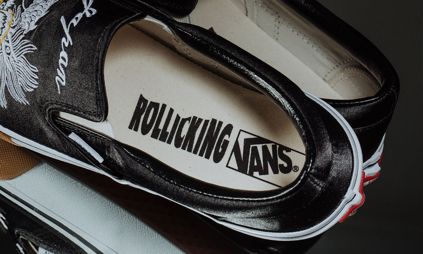 日本品牌 Rollicking 再度与 Vans 合作,运用黑色缎面来打造全新图案的龙虎刺绣 Slip-On,将日式传统工艺与横须贺夹克的魅力再度发扬光大。鞋盒包装也使用了特殊版本的配套设计,并搭载双方标志。Vans x Rollicking 横须贺 Slip-On 现已登陆 INVINCIBLE 官网开售,感兴趣的朋友可以前去了解一下。