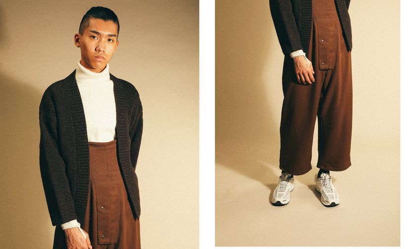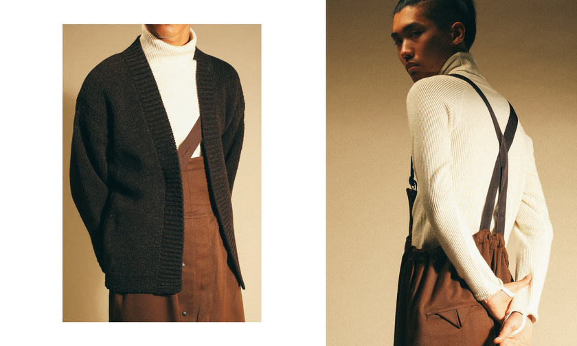 雅致的味道也成为此次造型特辑意在突出的地方,选择大衣、功能背心、背带裤、针织衫和帽饰等单品搭配,美式风格结合传统日本服装,同时注重季节性趋势和沉稳的配色。