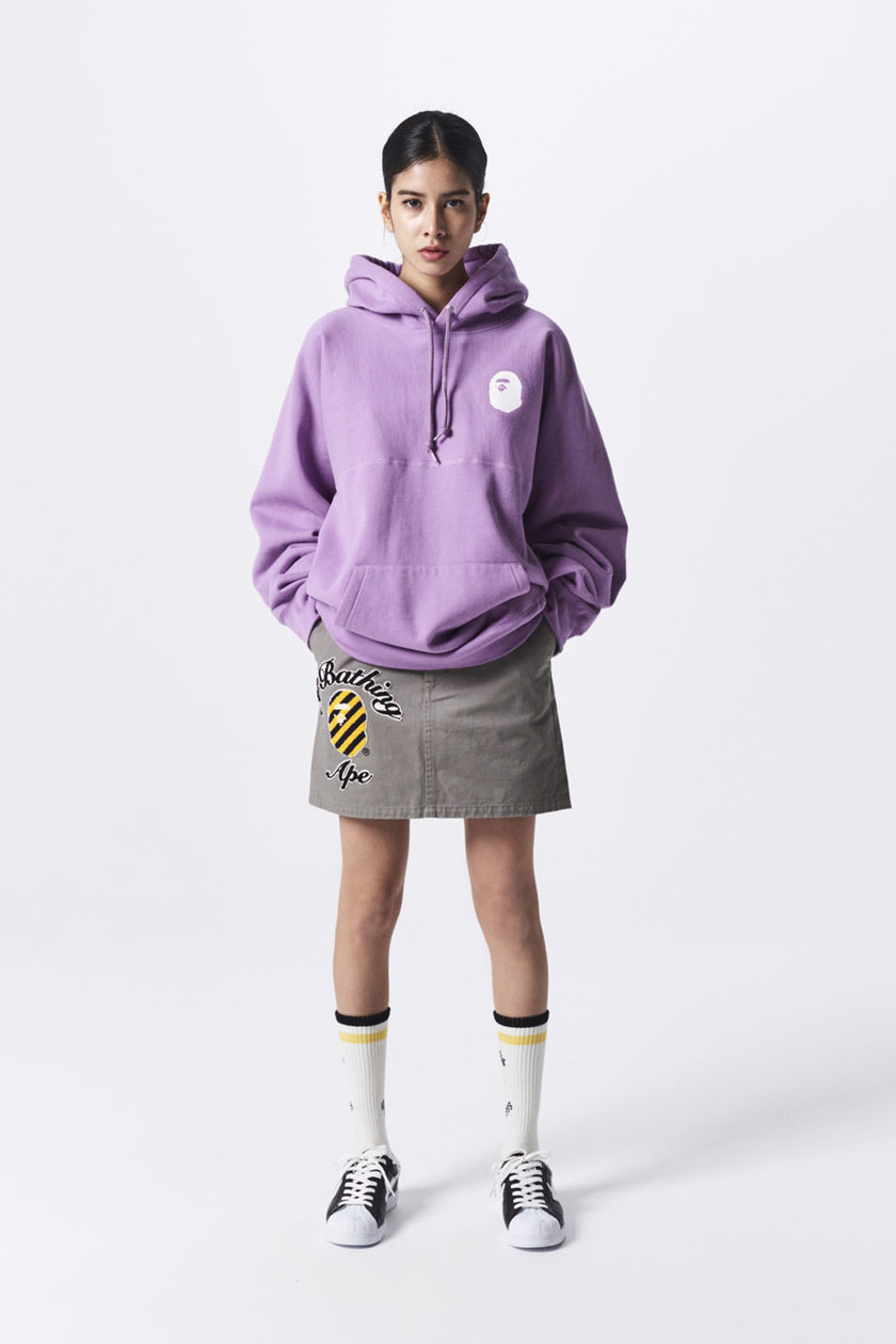 近日,A BATHING APE 释出了 2019 春夏女装系列。新系列包括了运动套装、外套、夹克、帽衫、T-Shirt、长裙等多种单品,在设计上延用了品牌的迷彩、猿人头等经典元素,街头风浓郁的同时也展现出了女生的优雅感。喜欢的朋友现在就可以前往 BAPE STORE 选购了。