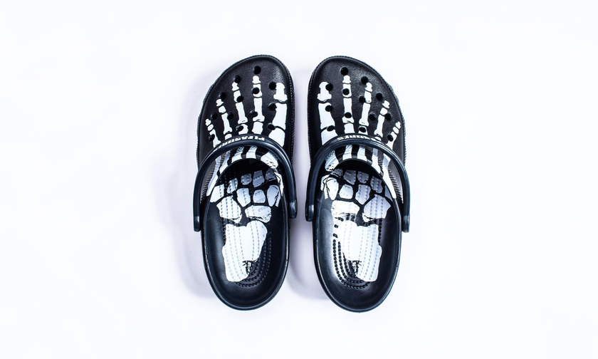 之前 PLEASURES 官方 Ins 就曾曝光过与 Crocs 的联名鞋款。鞋款以 Crocs 最具代表性的“洞洞鞋”作为原型,以黑色为主色,并在鞋面加入了特别的脚骨图案,视觉冲击极大。据悉,该鞋款将于 1 月 10 日在 PLEASURES 官网正式发售,Crocs“洞洞鞋”向来被视为“时尚灾难”,那这款联名你觉得潮吗?