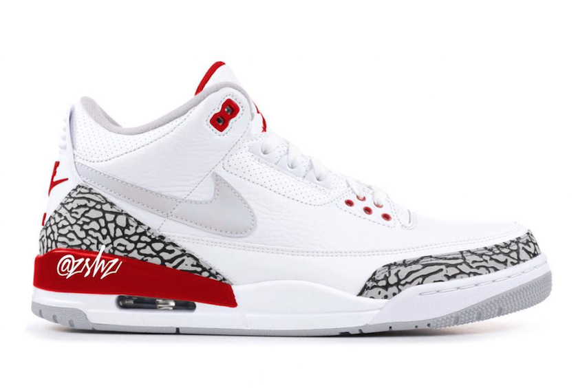 此番全新的 Air Jordan 3 “Tinker”将以白色优质荔枝皮打造,搭配红色细节点缀,加上灰色 Nike Swoosh 及爆裂纹设计,风格简约但又有引人注目的细节。虽然目前仅有 @zsneakerheadz 释出的假想图,但也能看出鞋款质感不凡。