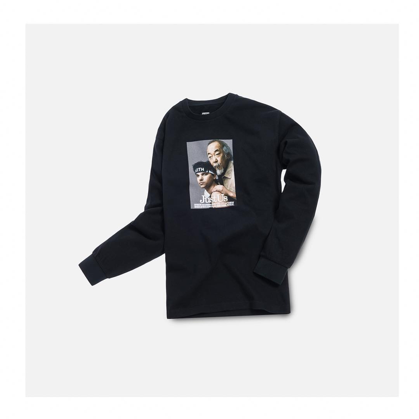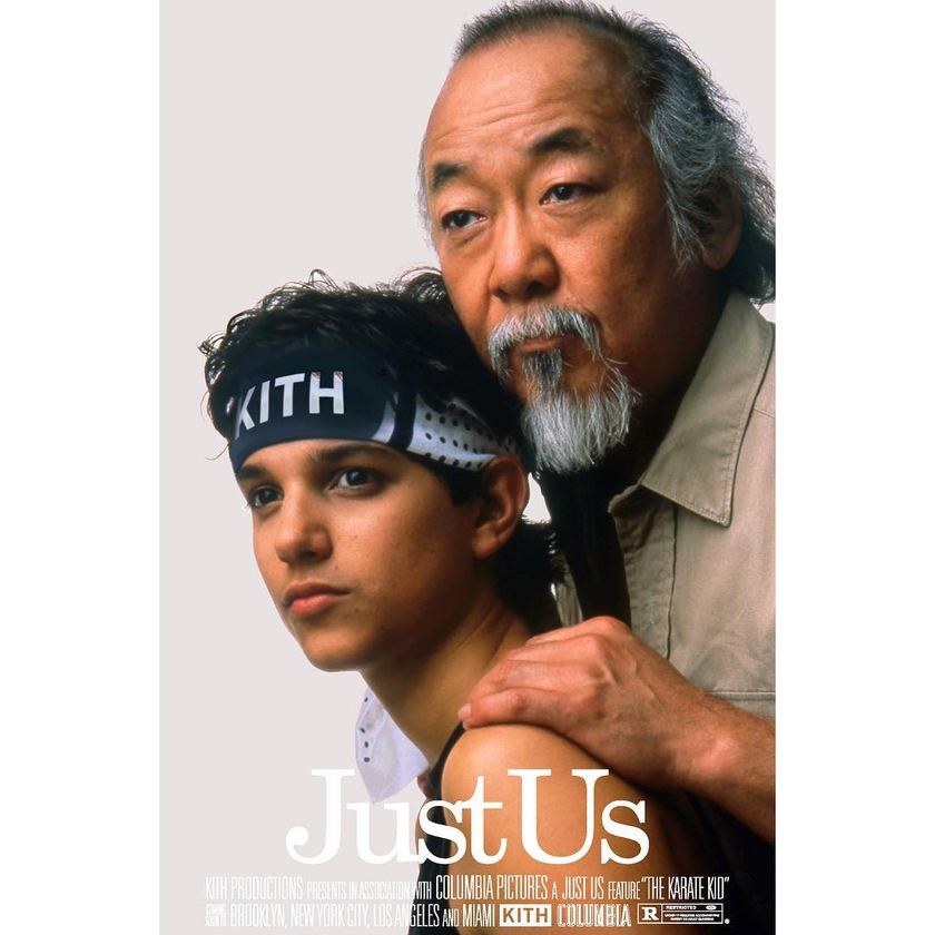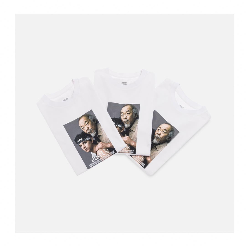电影主角 Daniel 及 Mr. Kesuke Miyagi 的剧照展现在单品上,而 Daniel 额头上的发带则加入了 “KITH” 细节,象征单品身份。