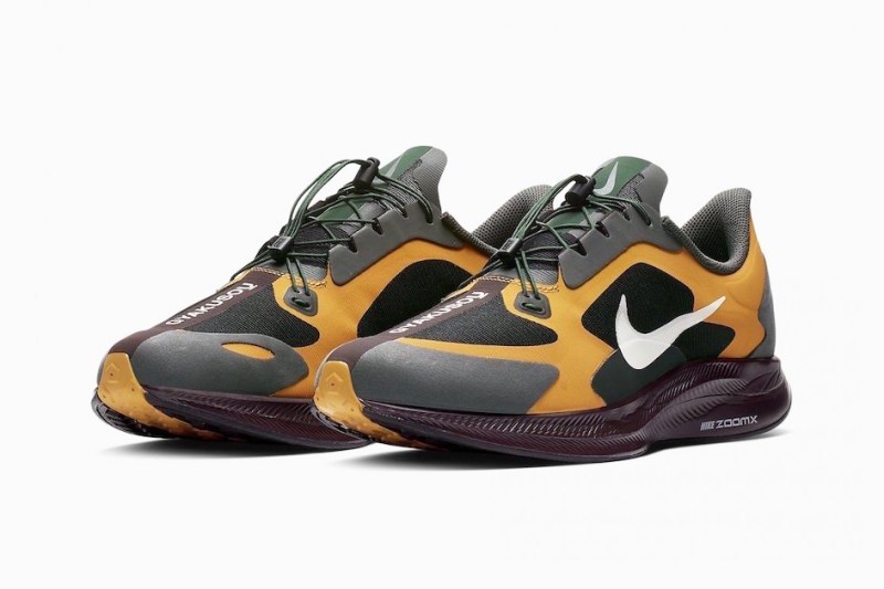 该鞋款以专业跑鞋 Zoom Pegasus Turbo 为蓝本出发,除了在配色方面尽显 UNDERCOVER 风格外,更采用了快速系带系统增加便捷性,而鞋头位置也以注入反光细节的「GYAKUSOU」字样点名身份,而 ZOOM X 大底更是为舒适脚感提供保障。