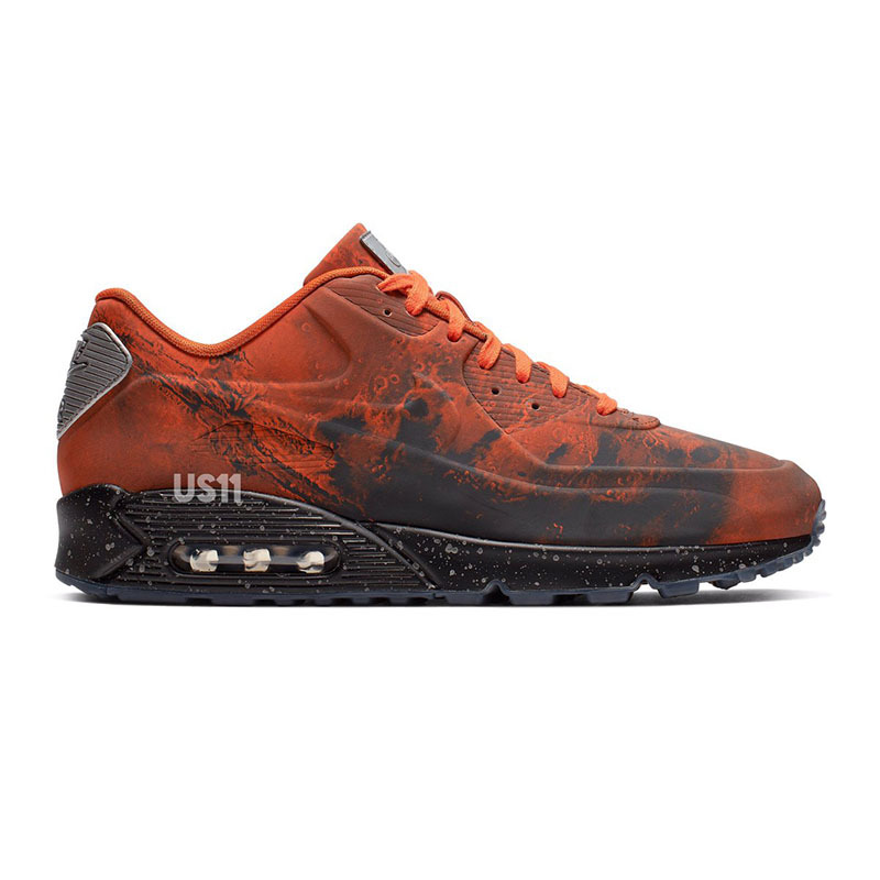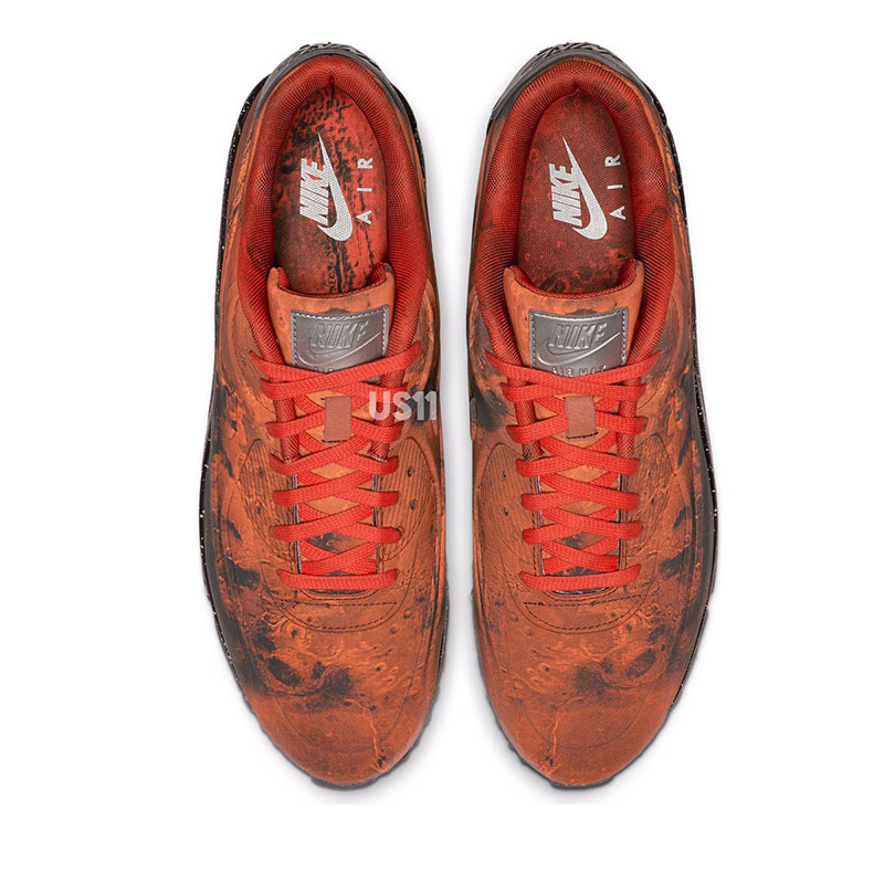 特别的火星任务 “Mars Landing”配色是今年Nike带来的全新配色,在网上也是极少露面。我们看到它的鞋面鞋面是无缝的,似乎采用了一种类似橡胶的复合材质。以黑红搭配为主,图案则是以登陆火星的主题呈现。另外在鞋舌和后跟采用了类似航空服的银色渲染。