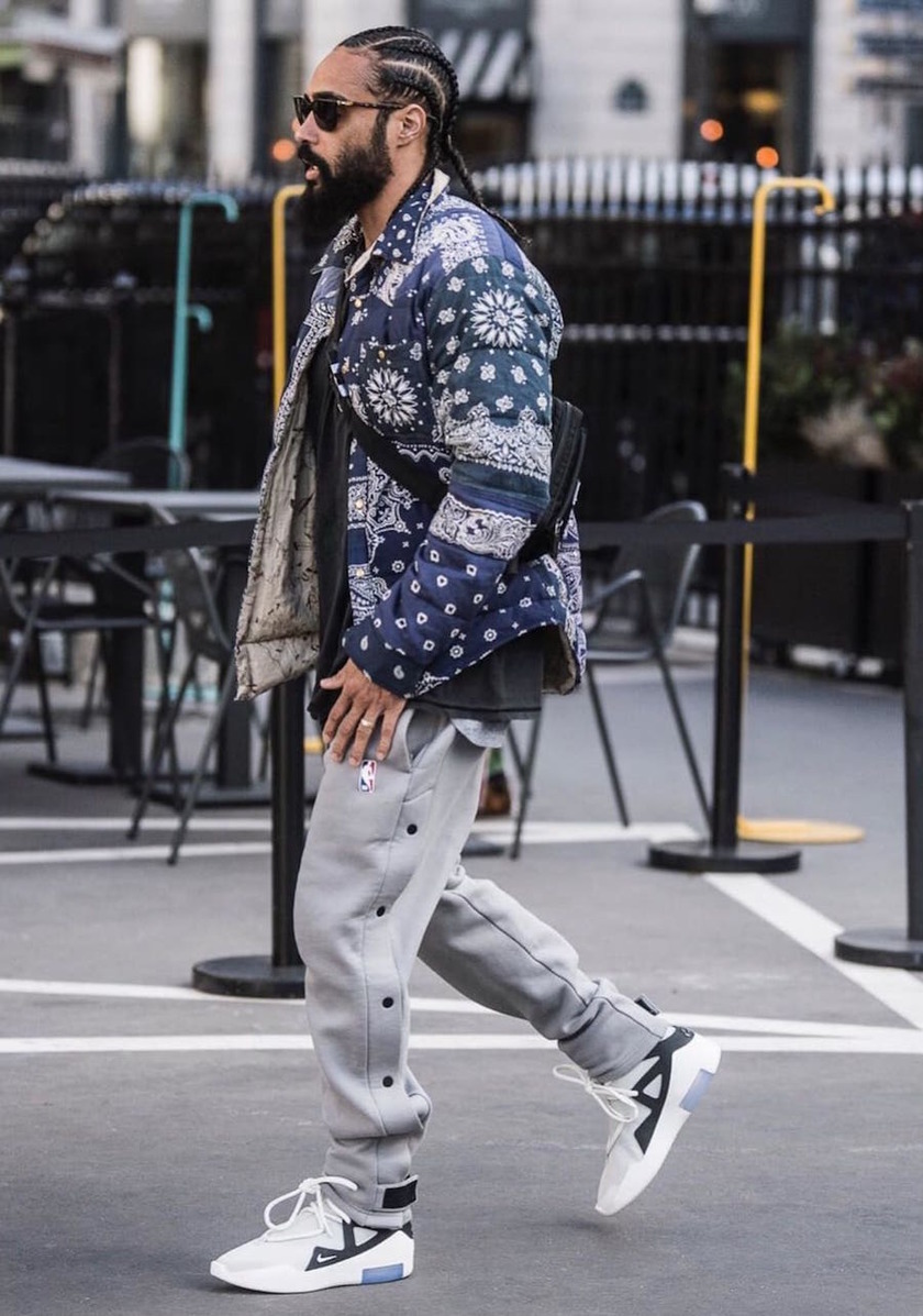 去年年底正式曝光的Nike Air FOG 1系列鞋款已经发售了一段时间,质感极佳的潮流气质成为大家追捧的对象。这款鞋型在配色、款式上的更新也是十分迅速。除了前一阵我们见到的低帮版本和绿、橙、黄,近日我们又从FOG主理人Jerry Lorenzo的脚上看到一双此前从未曝光的Air FOG 1。